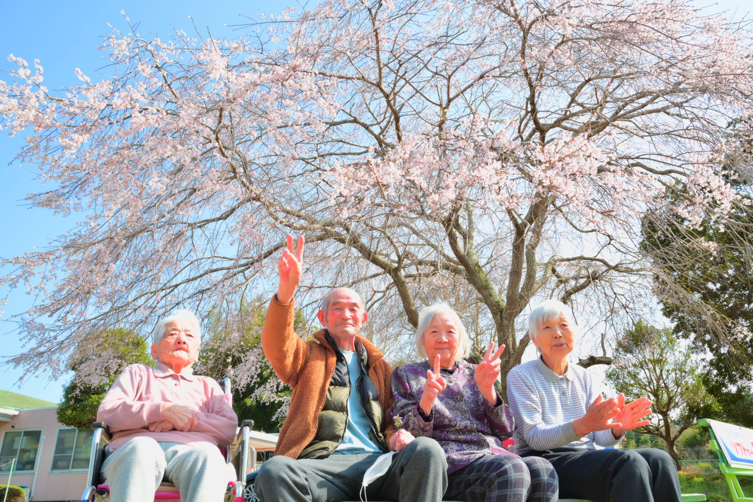 2025年04月10日/ 最終更新日時 : 2025年04月12日 Ever-kanriお知らせ 桜が満開です。ご無沙汰の投稿になりました。事務の深谷です当施設の中庭にある桜の花が満開になりお花見を行いました。皆さん椅子に座って記念撮影皆さん楽しまれていました。
